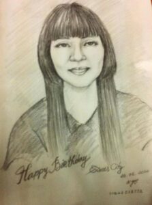 Bức hình áo dài đỏ, Lan Anh chụp năm 2008( cách đây 15năm); Bức hình vẽ chân dung được Hoạ sĩ vẽ trong sinh nhật tháng 6/2014 ( cách đây 9 năm); bức hình áo xanh pha vàng, Lan Anh vừa chụp trong tháng 10/2022.