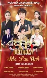 @ GALA ĐÊM CHÂN TÌNH & KẾT NỐI CỘNG ĐỒNG- Chúc mừng Sinh nhật Lan Anh lúc 19h30, Chủ nhật, 25/6/2023 tại sân khấu Hoa Lư ( Vân Hồ, Hà nội). Hiện nay đã có các tiết mục người thân Lan Anh dành tặng khách mời như Ban nhạc Nhã Phương, Vũ Đoàn Cherry, Ca sĩ Trịnh Thế Phong- Ngọc Minh Thuỷ, Mc Truyền hình Quang Vinh…